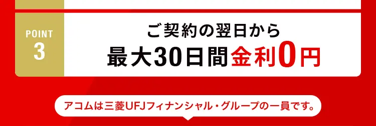 ご契約の翌日から最大30日間金利が0円!